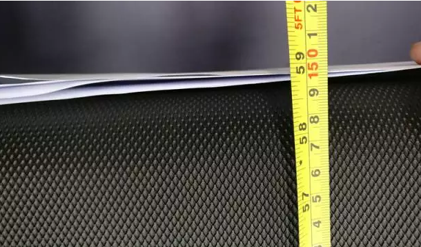 实测跑带的厚度为2.25mm,即便用美工刀不断割滑,也毫无划痕,说明快盈VIII这款跑步机跑带还是相对比较坚固度的,不会很容易断裂和磨平。